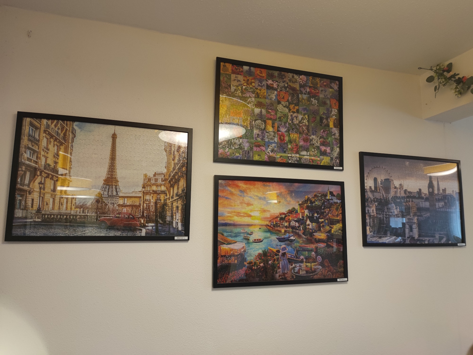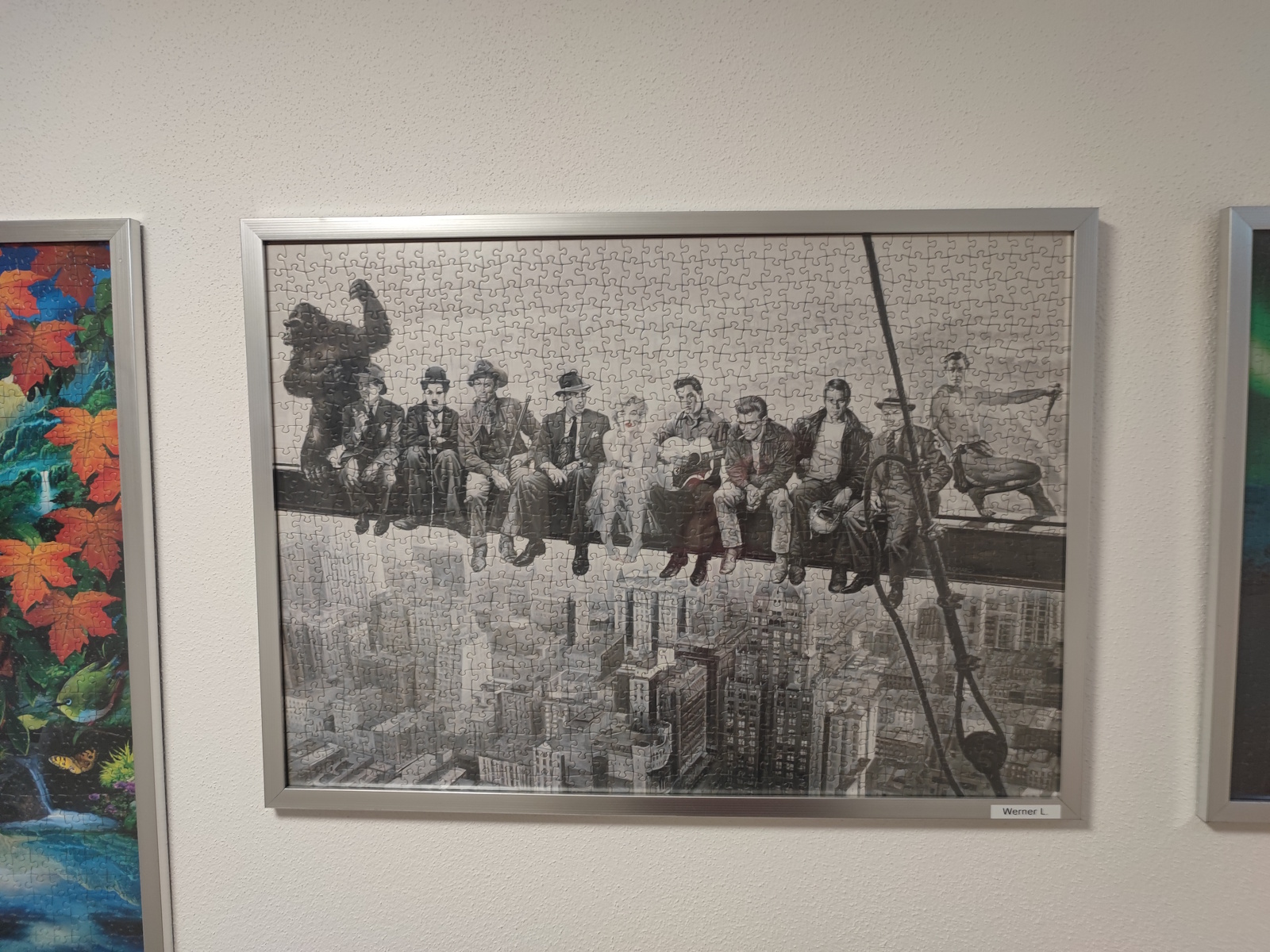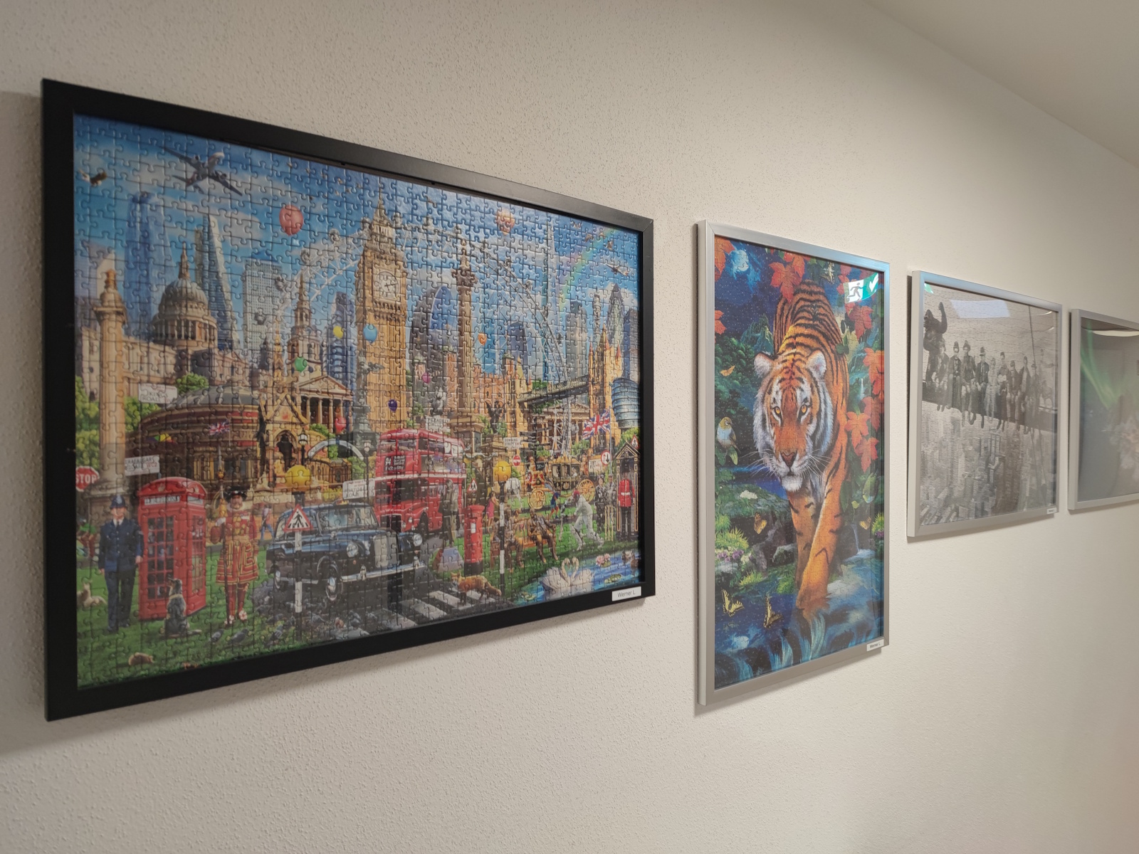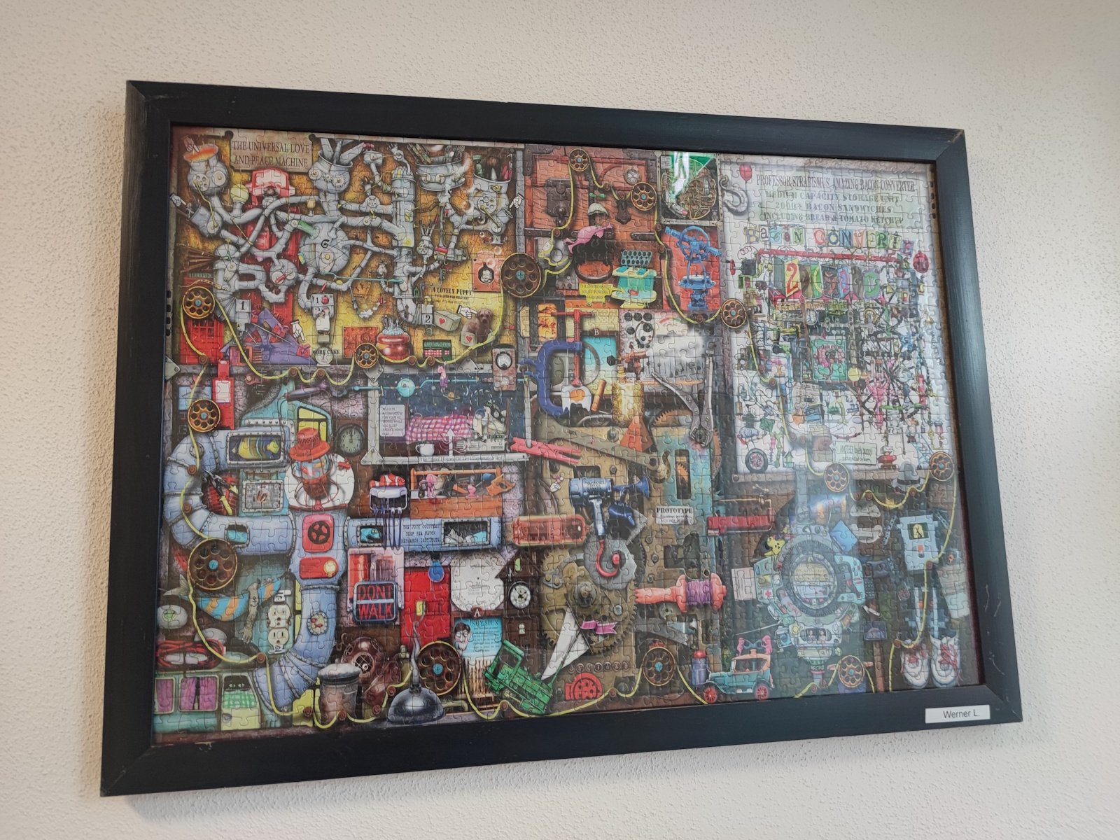 Als wir im Juli 2024 vom Kolbermoorer Altenheim Haus am Wendelstein gefragt wurden, ob wir ihnen ein paar Bilderrahmen spenden könnten, da bei ihnen im Haus viel gepuzzelt wird und sie die fertigen Bilder gerne aufhängen würde, haben wir das natürlich sehr gerne gemacht. Doch dass uns bei unserem diesjährigen Osterbesuch so viele Puzzlebilder in den Gängen begrüßen würden, damit haben wir nicht gerechnet. Vor allem der Werner ist der erklärte Puzzlekönig.